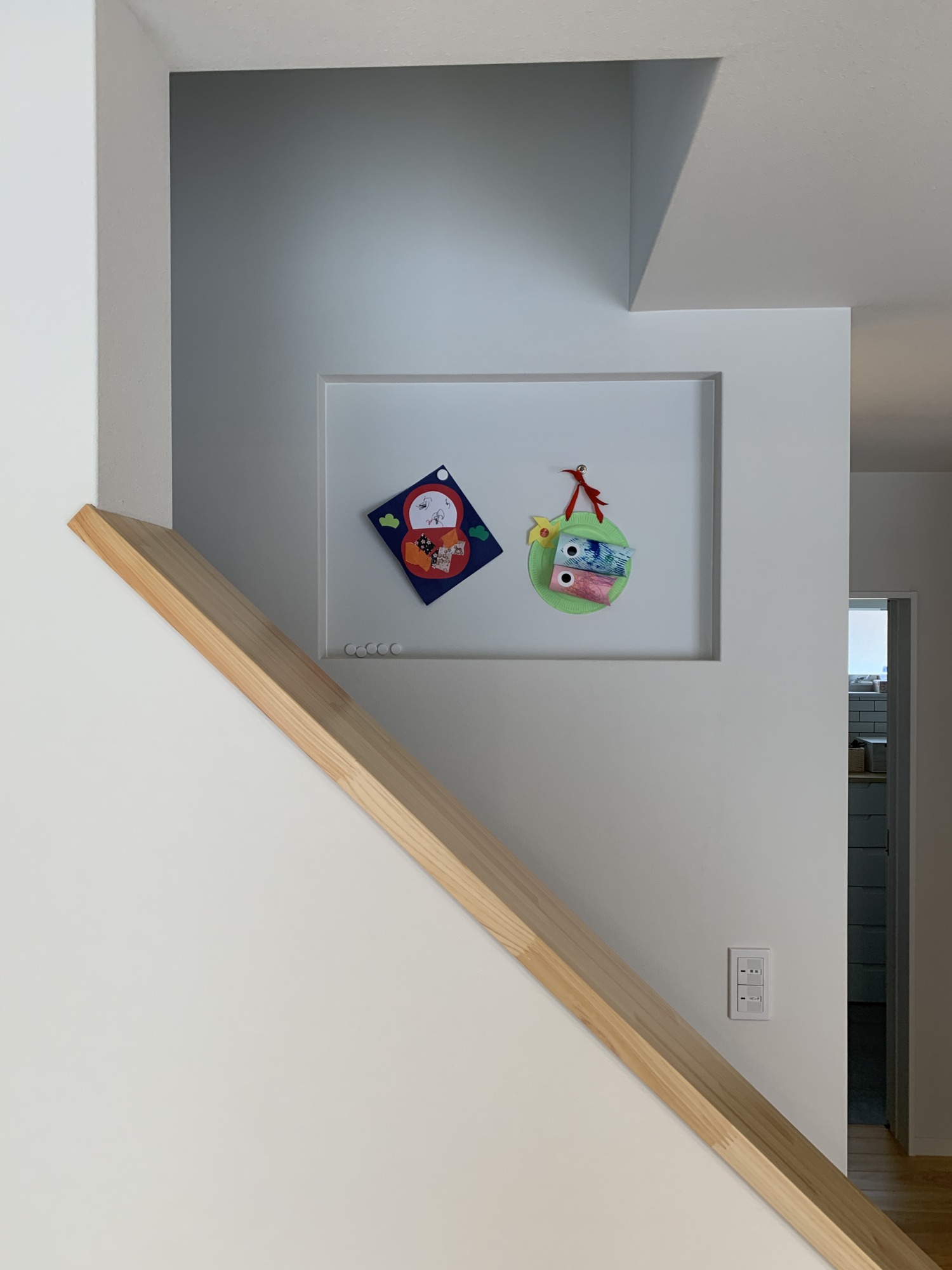自然素材ならではの温かみが、モダンなグレークロスと心地よいコントラストを生み出し、空間全体が穏やかに。