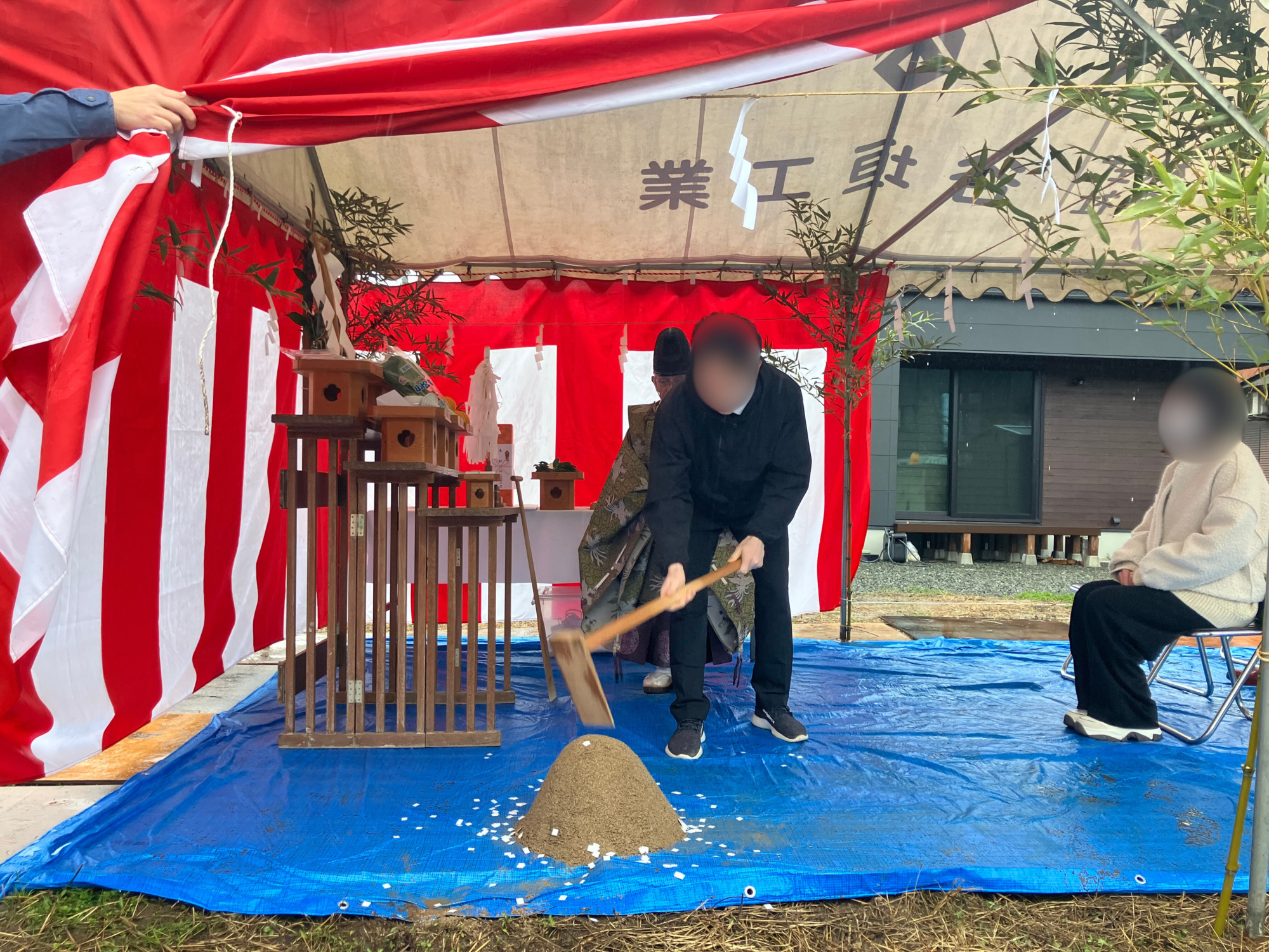 盛砂を土地に見立て、建築の着工を神様に奉告します。