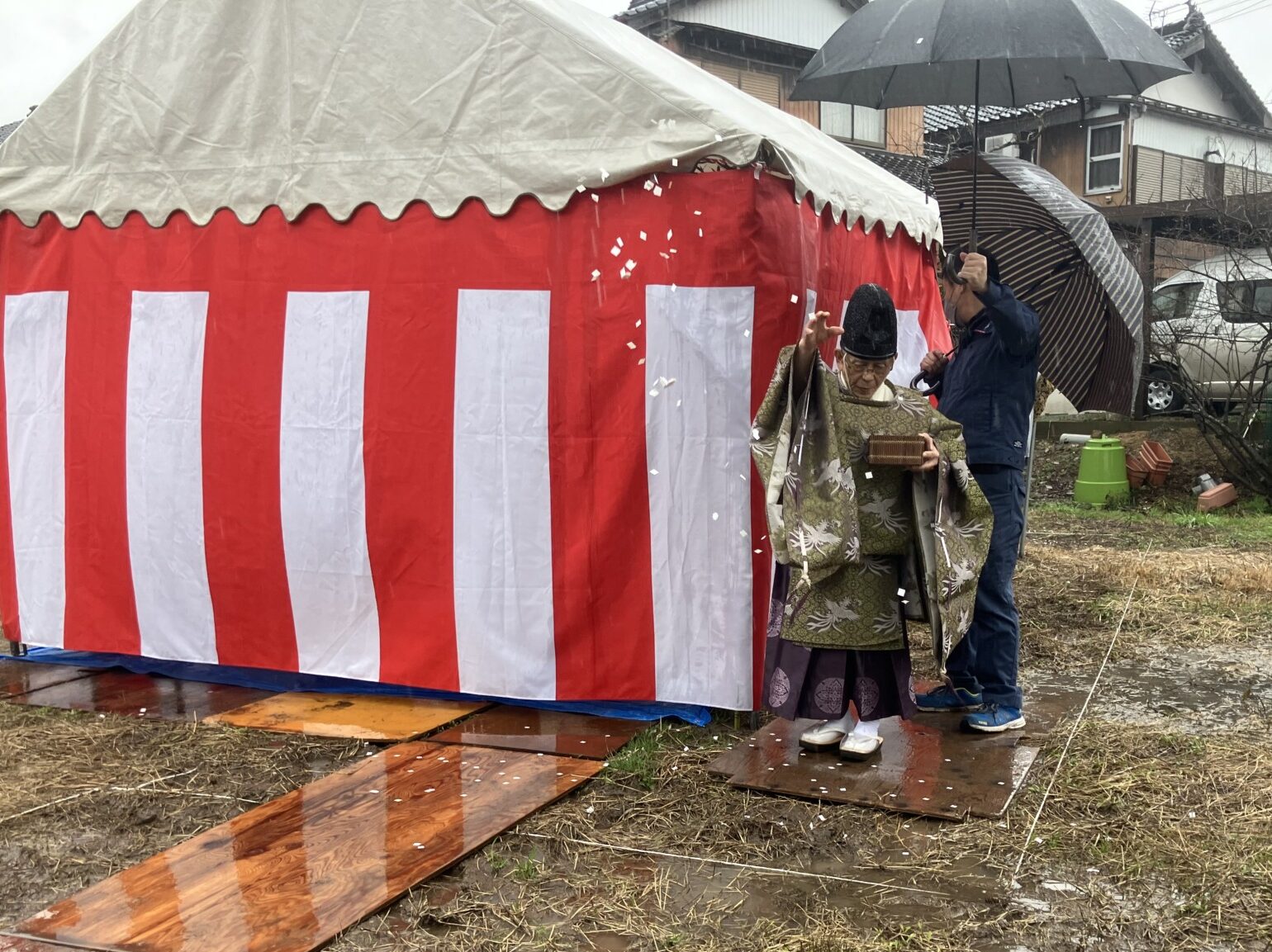さて先日は、日高町にて新築工事の地鎮祭を執り行いました。