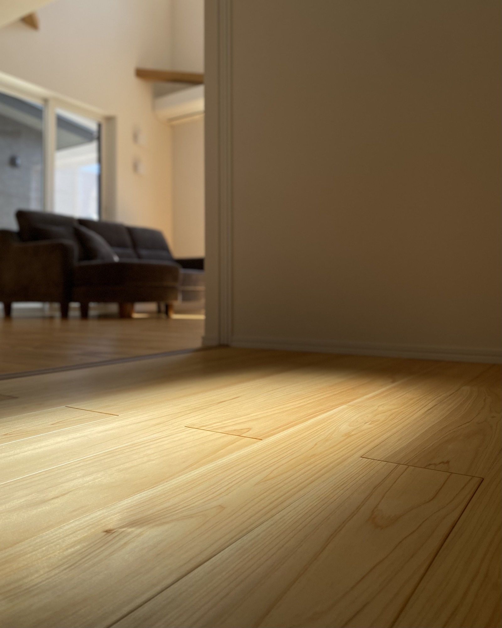 谷垣工業モデルハウスは、桧の無垢フローリングを採用しています。